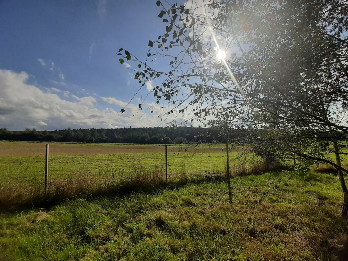Działka ogrodzona siatką leśną.