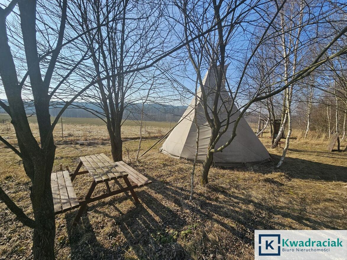 Dodatkowe obiekty: tipi oraz dwa domki - narzędziowy i ogrodowy, idealne do przechowywania sprzętu lub jako dodatkowa przestrzeń rekreacyjna.
